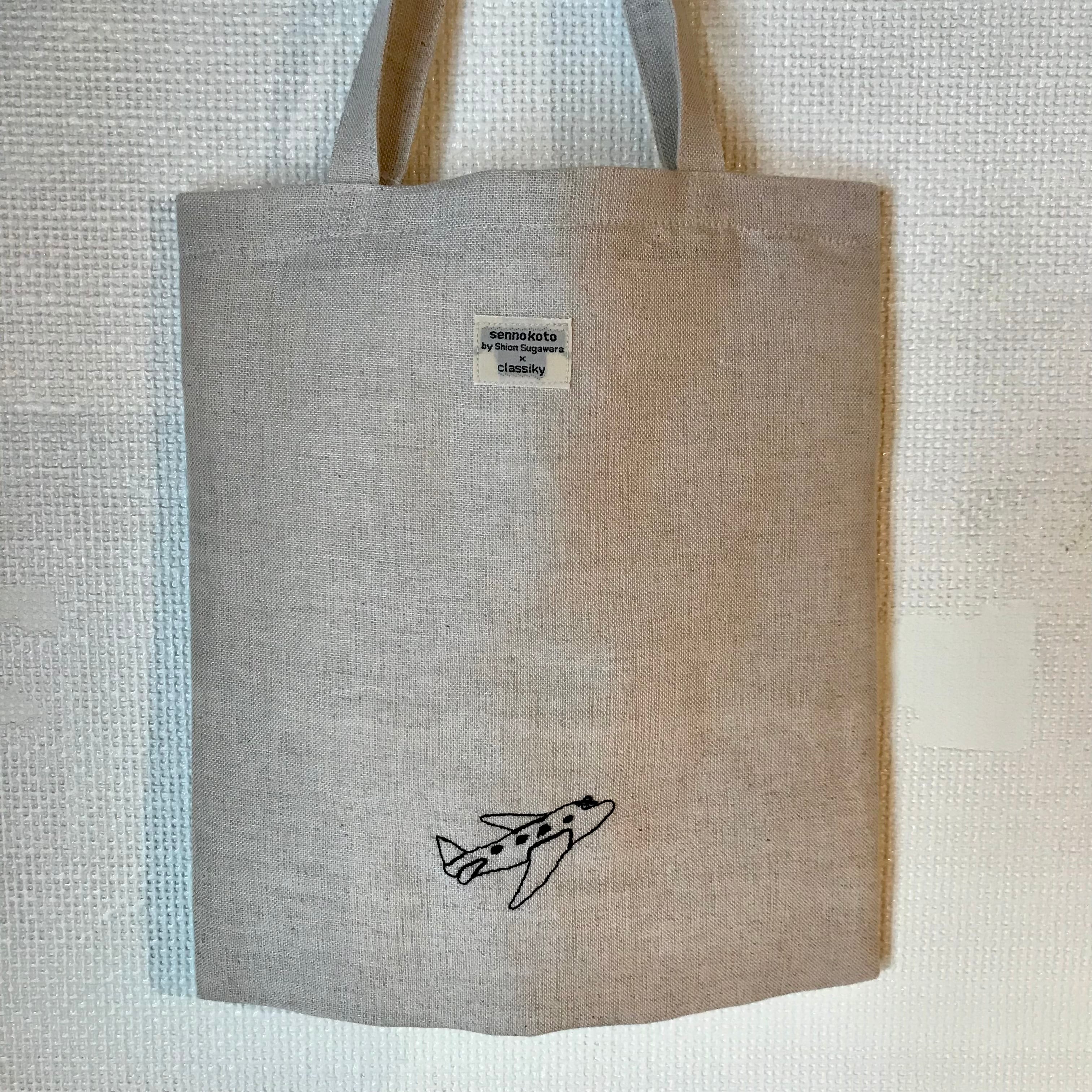 ミシン刺繍作家のsennnokoto / 菅原しおんさんが倉敷意匠計画室とつくったリネンの刺繍ミニバッグ。